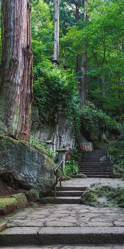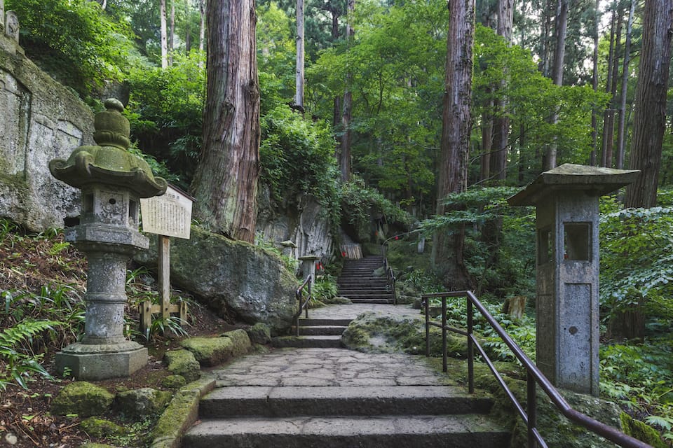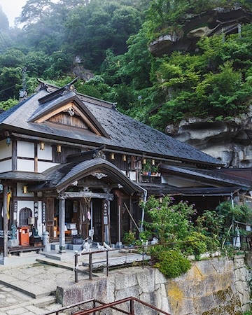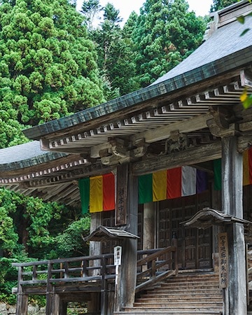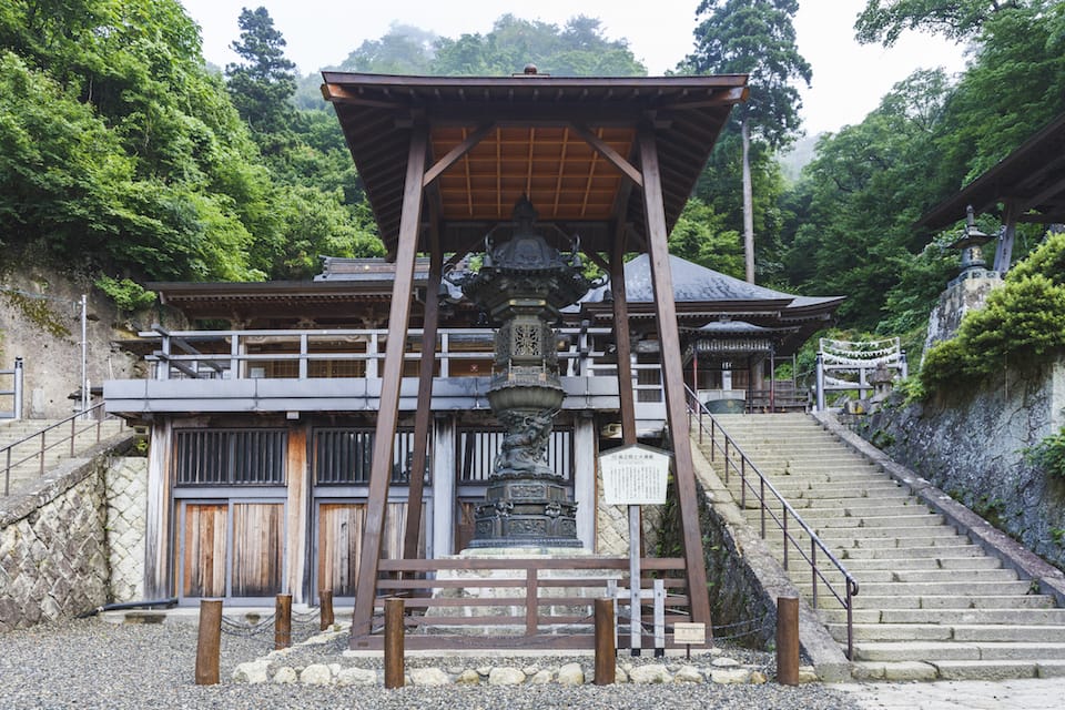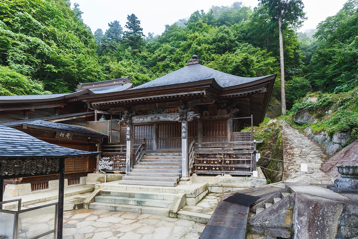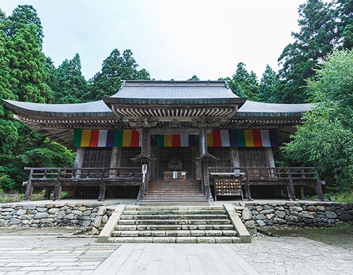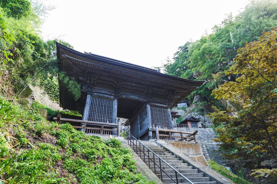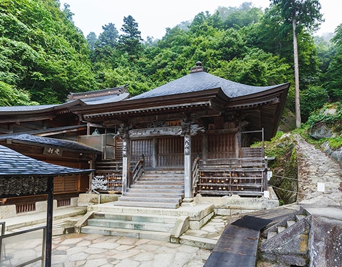 根本中堂は立石寺という御山全体の寺院の本堂に当たる御堂です。 現在の根本中堂は延文元年(1356年)初代山形城主・斯波兼頼が再建した、入母屋造・五間四面の建物で、ブナ材が全体の6割程用いられブナ材の建築物では日本最古といわれます。